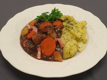 - Blanquette de veau à l'ancienne et petit oignons glacés.