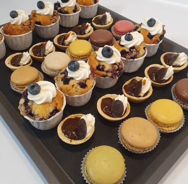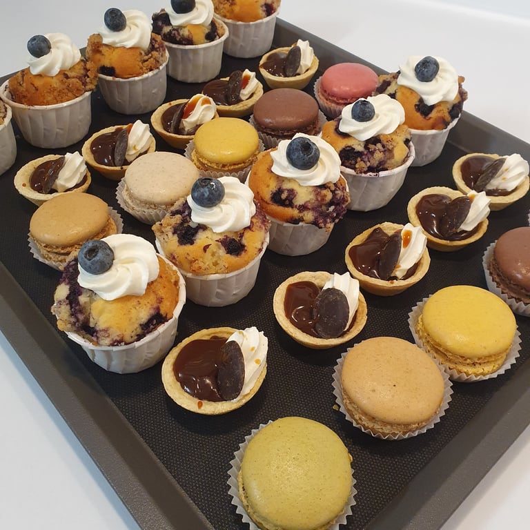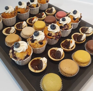 - Macaron assortis : vanille, pistache, café, framboise, citron, chocolat.