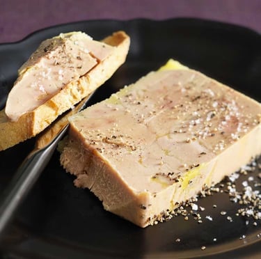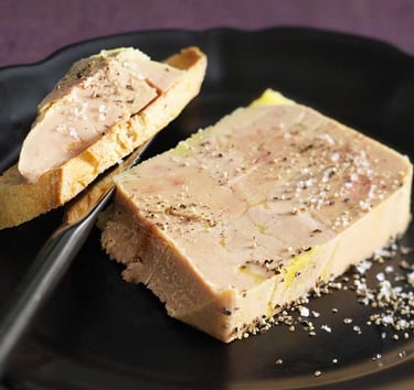 - Terrine de foie gras maison aux quatre épices, sur pain brioché et sa gelée de Porto.