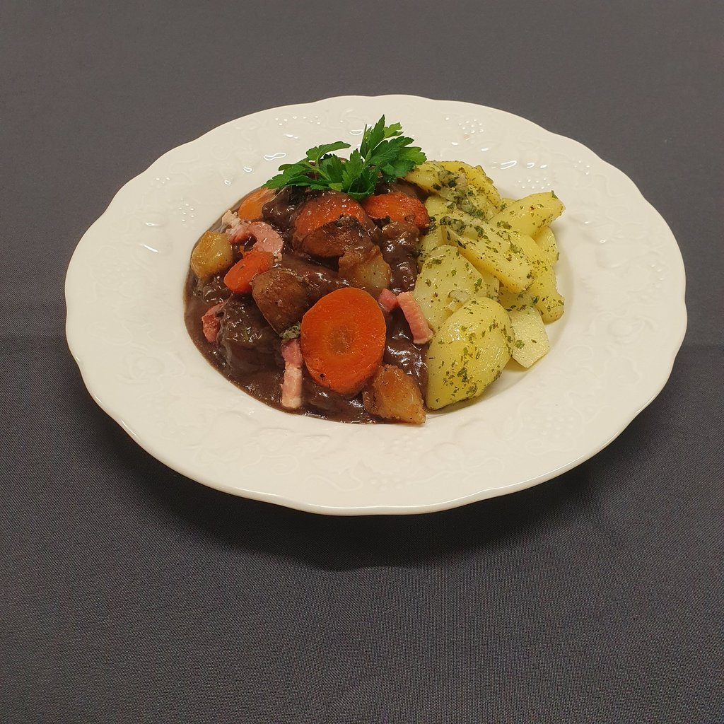 - Blanquette de veau à l'ancienne et petit oignons glacés.