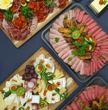 - Sélection de charcuteries : Jambon de pays, rosette, chorizo, saucisson à l'ail, andouilles,